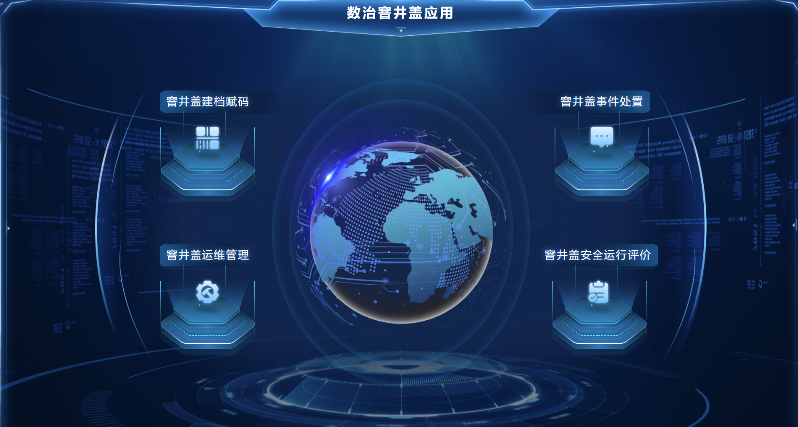 “數(shù)治窨井蓋”應(yīng)用主要包括窨井蓋建檔賦碼、運(yùn)維管理、事件處置、安全運(yùn)行評(píng)價(jià)四個(gè)應(yīng)用場(chǎng)景及一個(gè)數(shù)據(jù)駕駛艙。