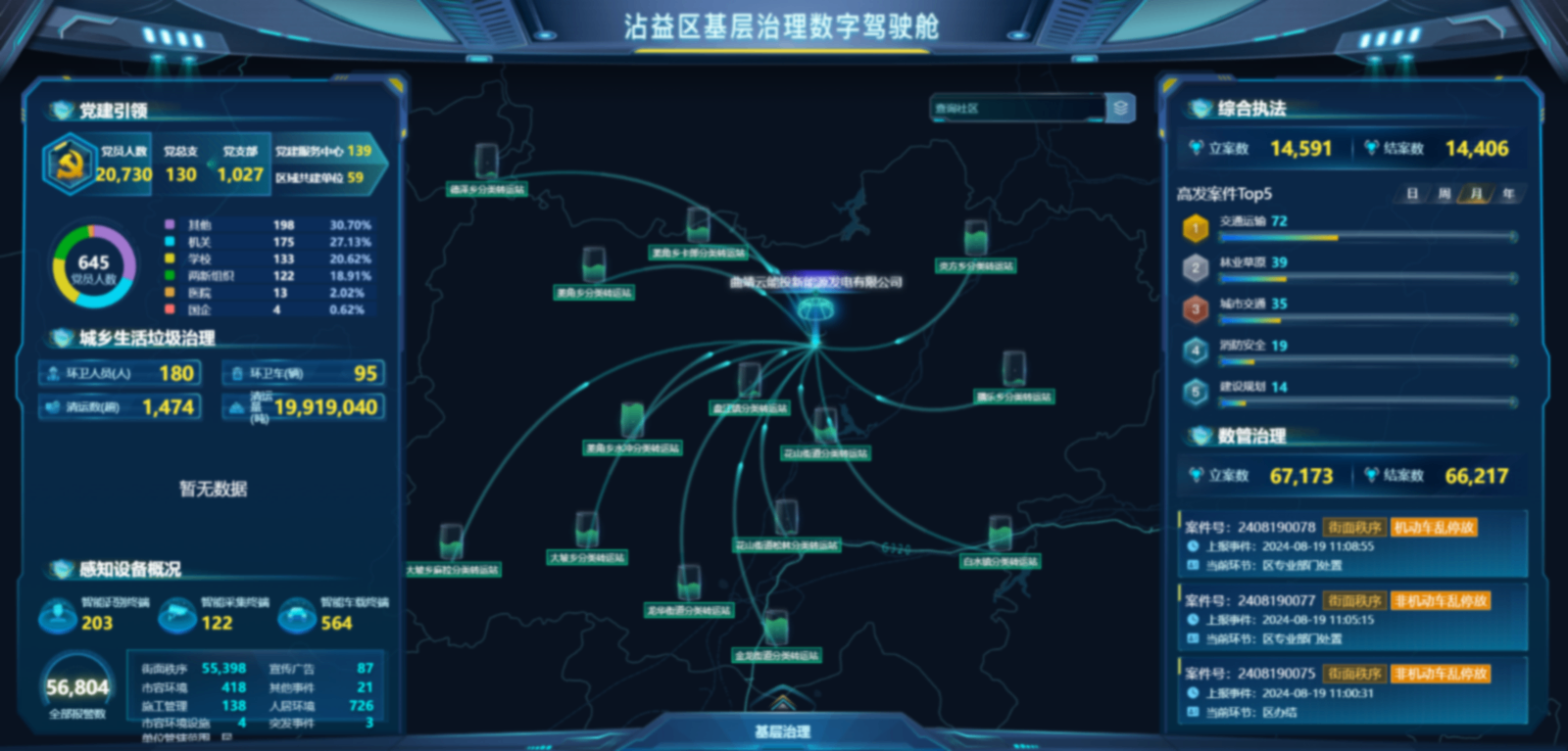 沾益區(qū)以提升基層治理能力為重點(diǎn),緊緊圍繞全民參與、共治共享的工作思路,搭建黨建引領(lǐng)基層治理信息服務(wù)平臺(tái),調(diào)度涵蓋市容市貌、生態(tài)環(huán)境、應(yīng)急指揮、住房建設(shè)、食品安全等多個(gè)領(lǐng)域,統(tǒng)籌456項(xiàng)基層治理事項(xiàng),實(shí)現(xiàn)對(duì)59類基層治理高頻事件智能分析、采集、上報(bào)。同時(shí),平臺(tái)聚焦“可視化”應(yīng)用,通過實(shí)時(shí)視頻采集、智能分析等方式,實(shí)現(xiàn)了“全域態(tài)勢(shì)可感知、運(yùn)行體征可監(jiān)測(cè)、平時(shí)事件可管理”,形成“一屏觀沾益、一網(wǎng)治沾益”的基層治理新格局。